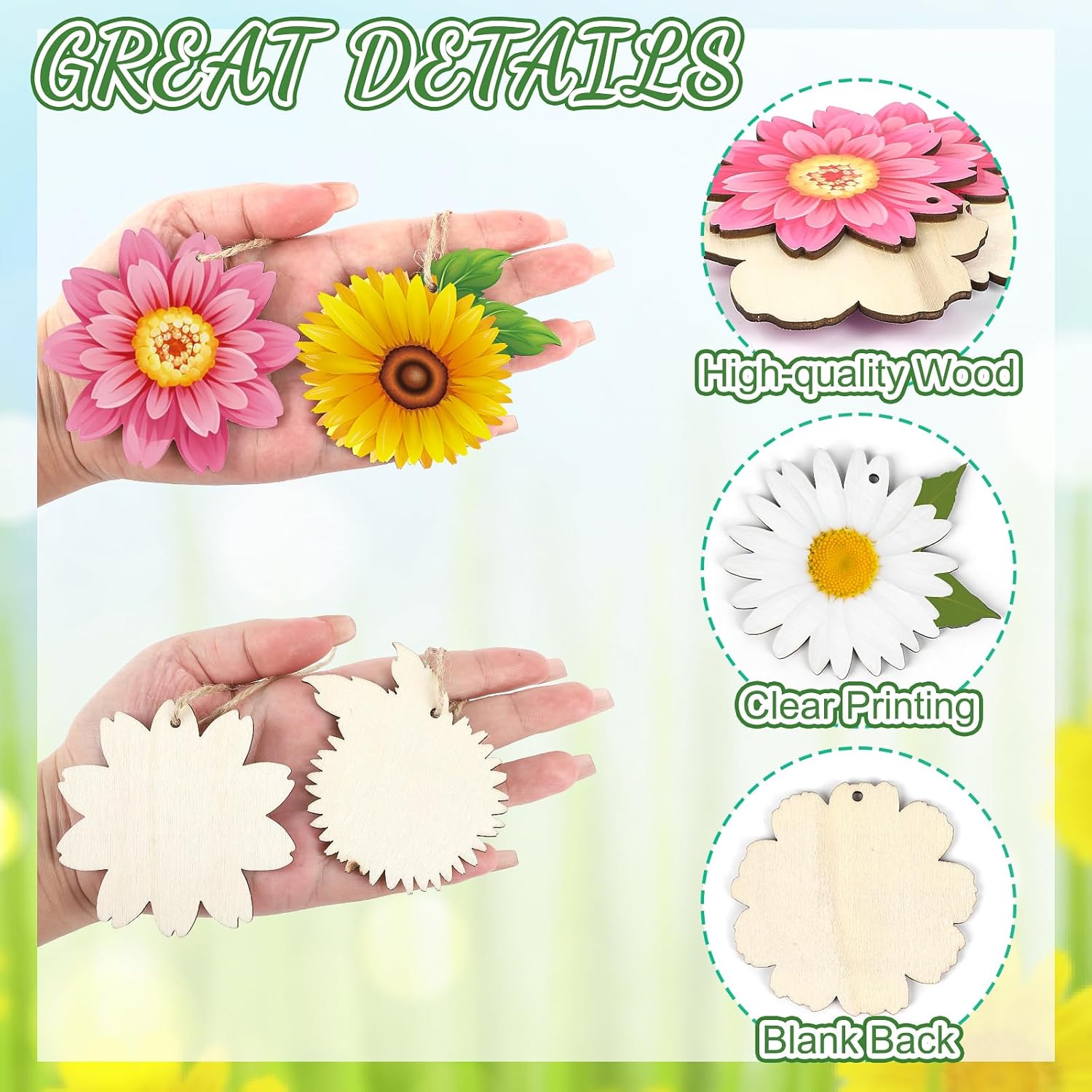 - Superior Craftsmanship: Our spring flower hanging ornaments are made with great care, crafted from high-quality natural wood. They are sturdy, durable, and not easily deformed or broken. With a smooth, polished surface and printed single sided, these ornaments are designed to last for a long time.