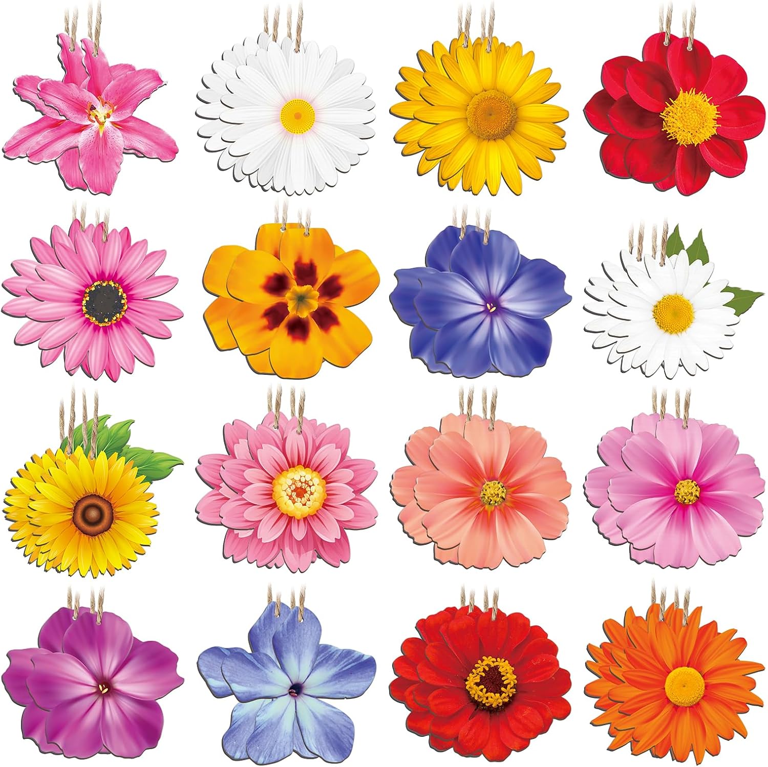 - Package Includes: You will receive 32pcs flower wood ornaments in 16 different designs, with 32pcs twines, each spring tree ornaments measures about 3.0 inch. Sufficient quantity and proper size for your spring summer and flower theme party, light up your home.